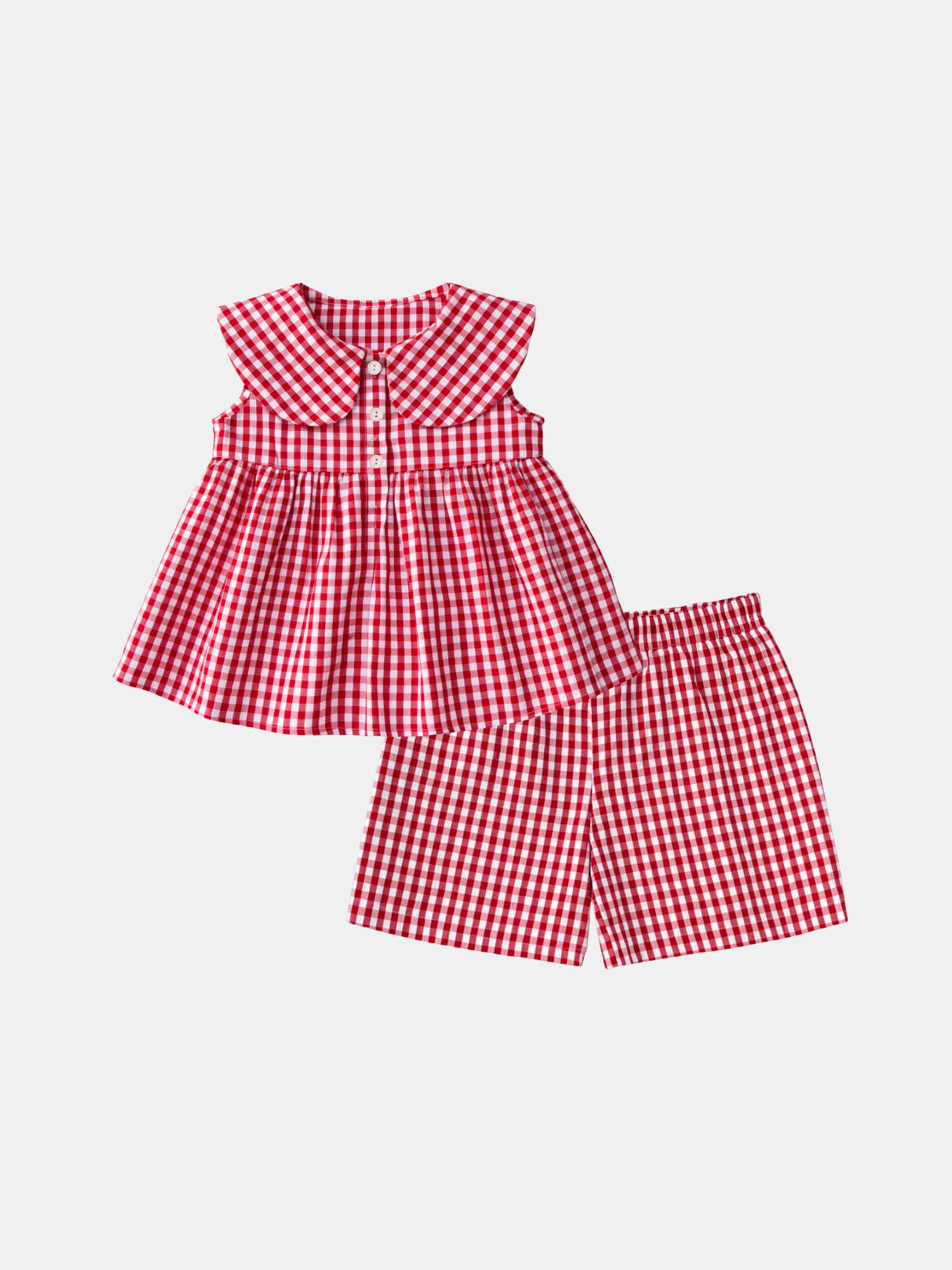 O conjunto Jasmim é aquele clássico que nunca perde o encanto. Com estampa vichy e uma golinha delicada, ele traz um ar atemporal e cheio de doçura para os pequenos. Feito em tricoline 100% algodão, é leve e confortável para acompanhar o dia todo. A blusa possui abotoamento frontal, facilitando ao vestir, e o short conta com elástico na cintura para garantir ainda mais conforto nos movimentos.